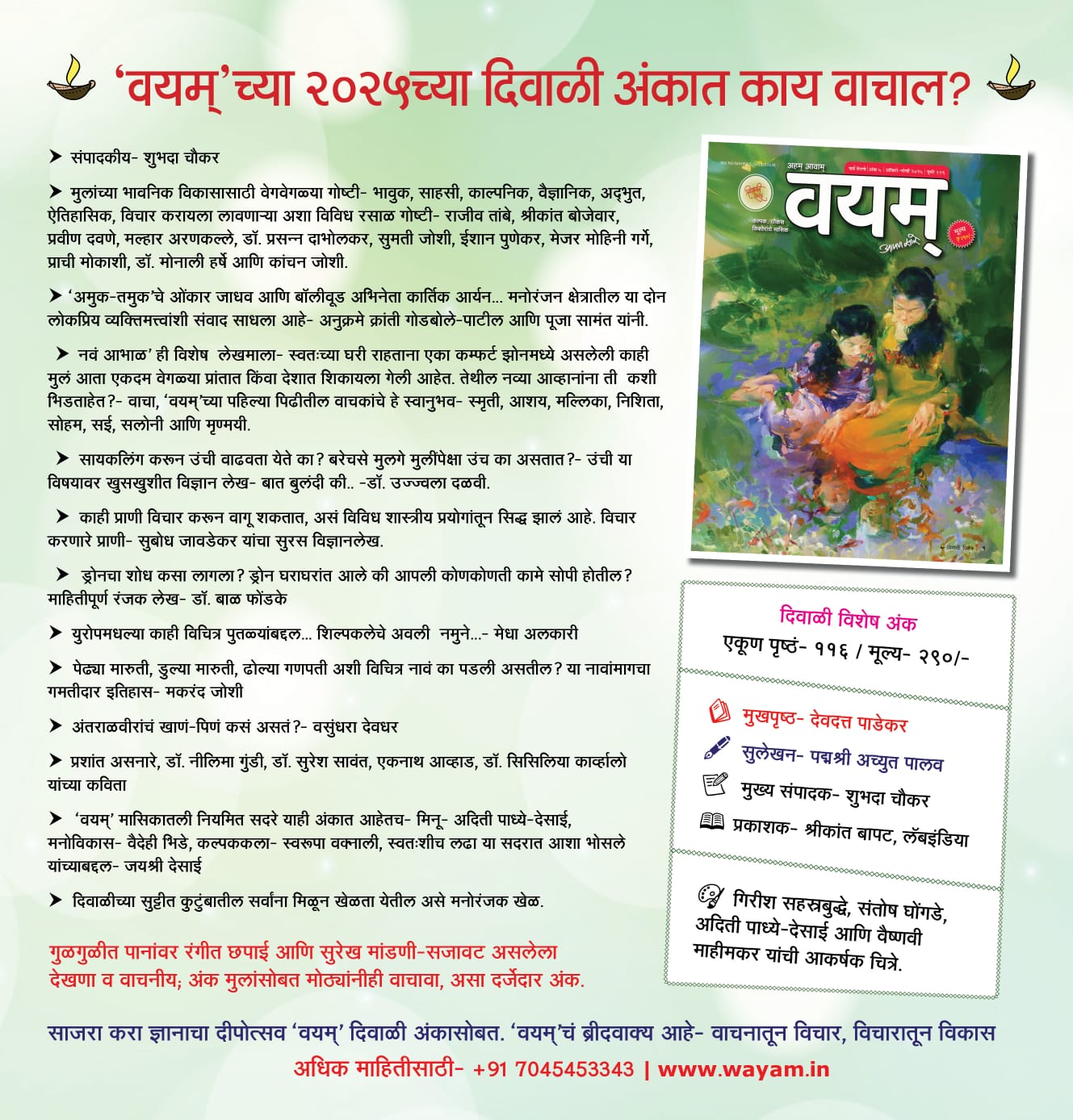 ‘वयम्’ दिवाळी अंकामध्ये विविध विषयांवर आधारित